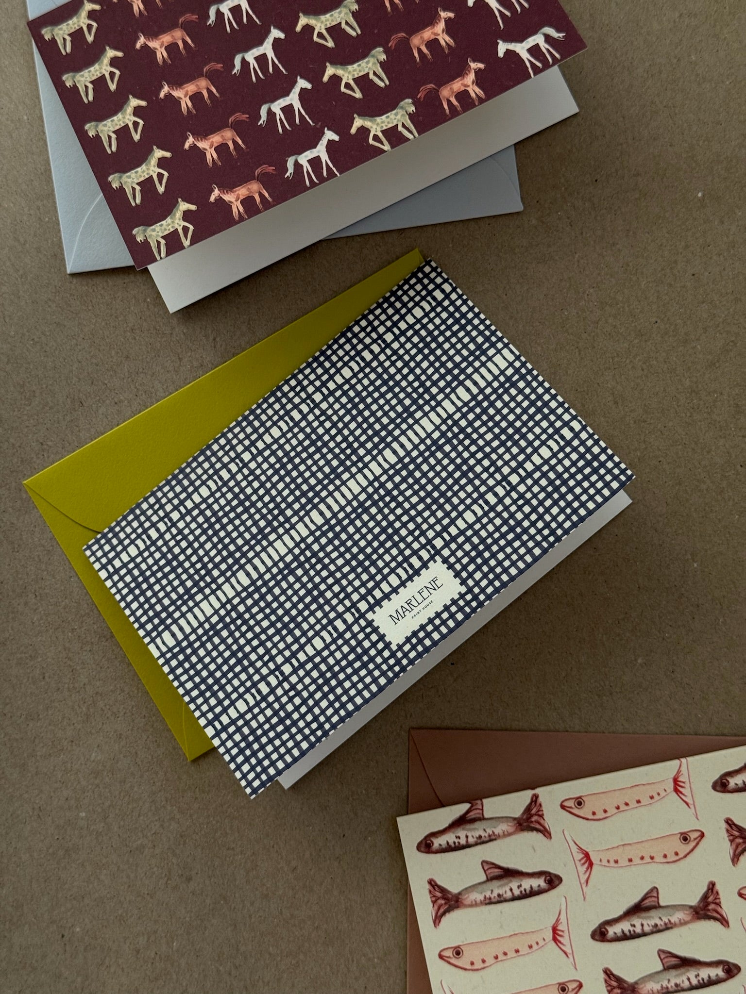 A timeless pattern, reimagined. Gingham is at the heart of the winter season, and our take is designed to be enjoyed year after year. This paper comes in a navy-and-white colorway — a nod to enduring style.