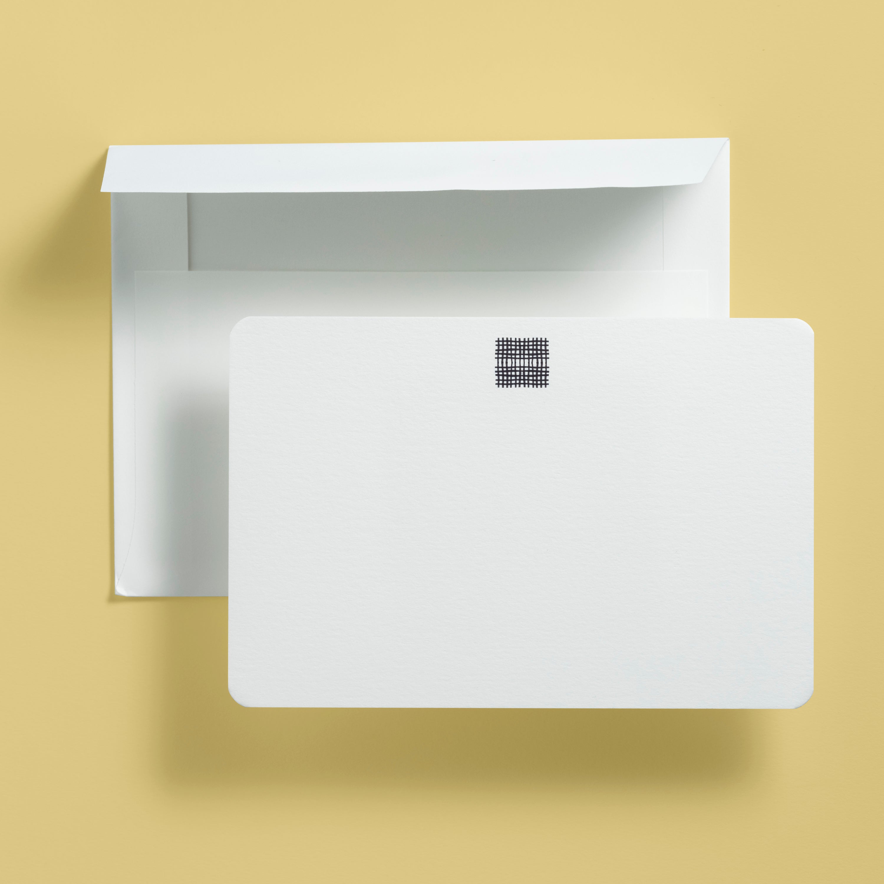 With rounded corners and textured linen paper, these notecards feature a subtly understated pattern that keeps them timeless and versatile.