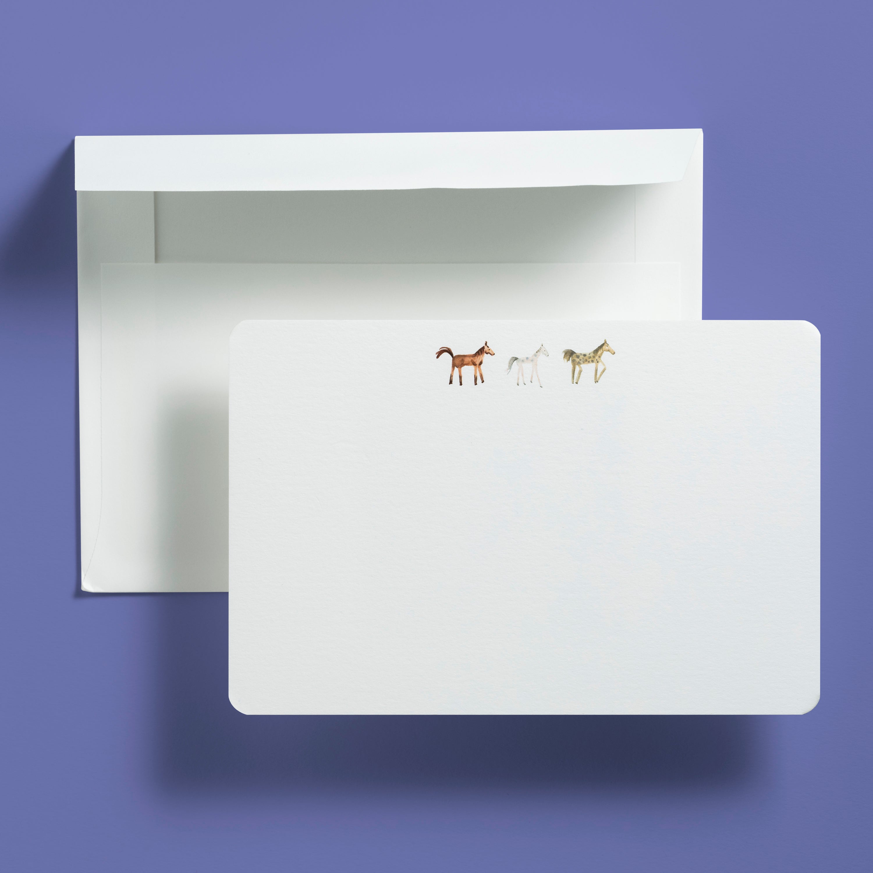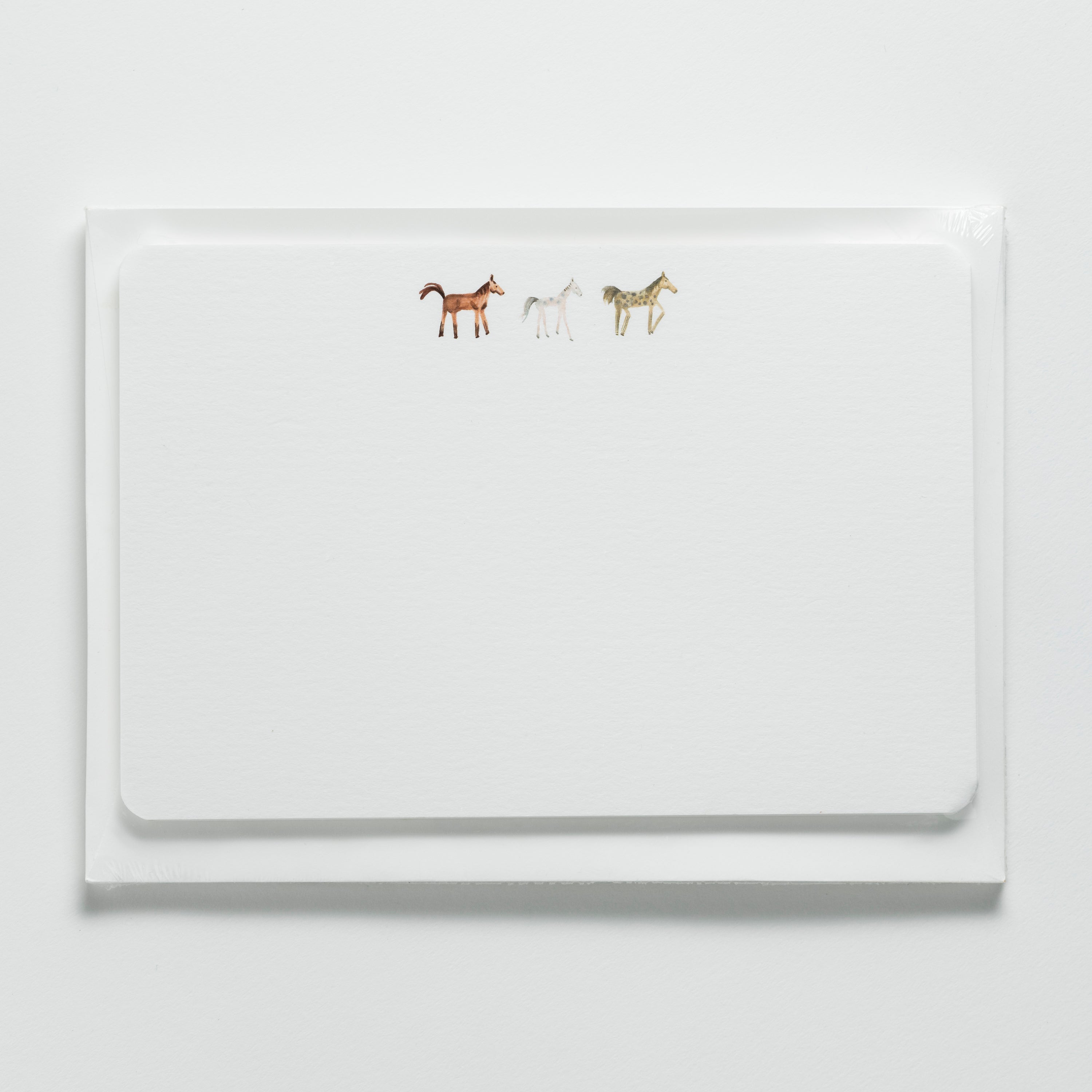 A little bit whimsical, a little bit wonderful. These notecards feature our watercolor horses — cheerful companions that accompany every note you send, carrying your hellos, kind words, and everyday thoughts along with them.