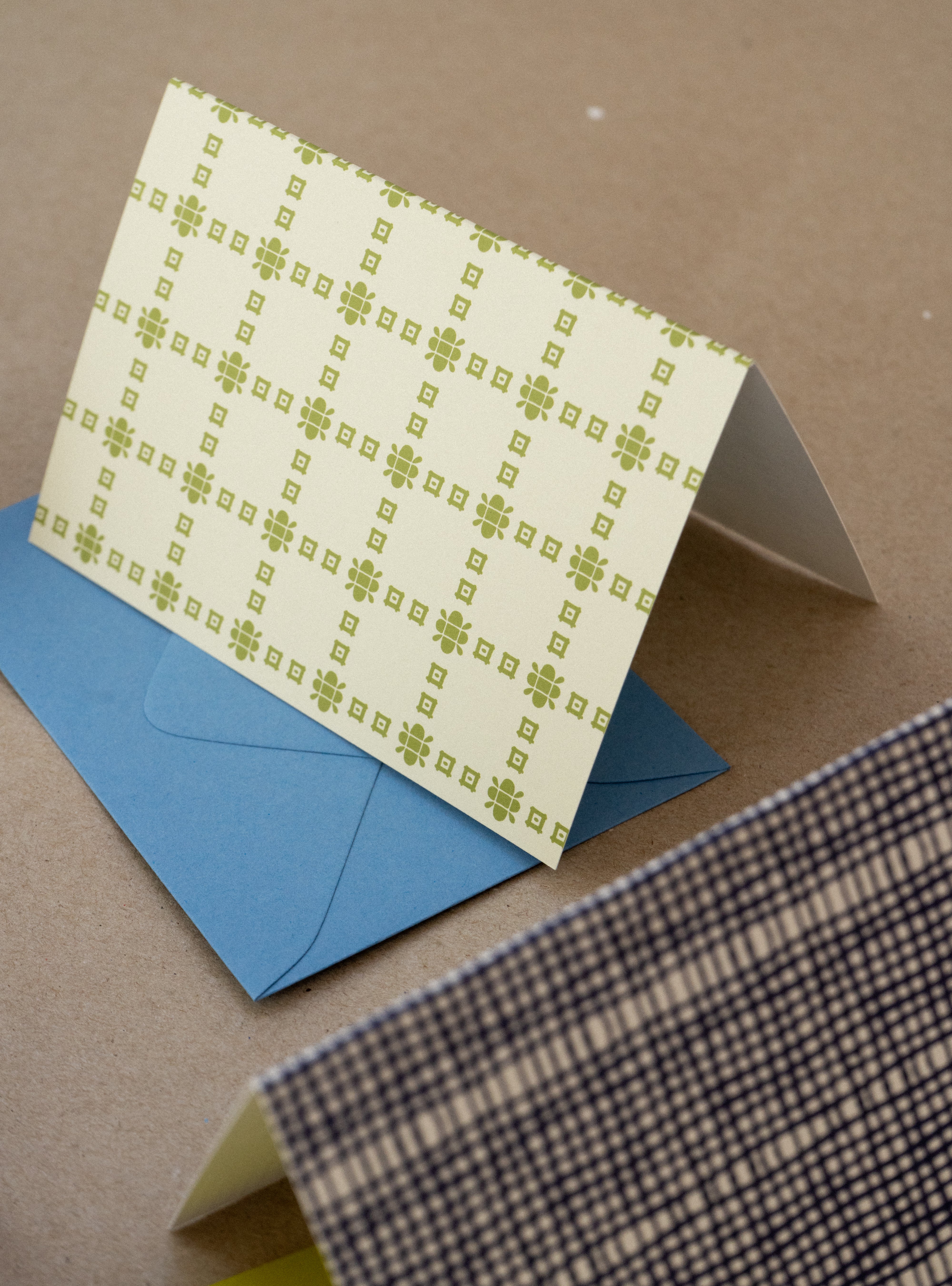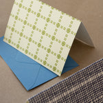 Crafted by an American-based print shop, these cards are perfect for notes, letters, or any little message that deserves a touch of style. Paired with a new blue colored envelope for a bit more fun.